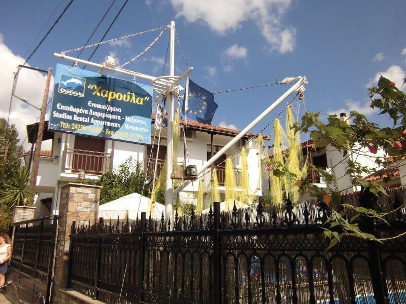 Aparthotel CHAROULA Platanias se nalazi na 200 metara udaljenosti od mora i plaže, u letovalištu Platanias u južnom delu poluostrva Pilion u Grčkoj. Aparthotel CHAROULA je porodični objekat sa recepcijom, lepo uređenim dvorištem u kojem se nalazi bazen sa ležaljkama i suncobranima. Gostima je dostupan signal za WIFI internet.