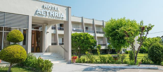 U sastavu hotela AETHRIA nalazi se recepcija, restoran, bar, bazen sa ležaljkama i suncobranima, sef (uz doplatu), igralište za decu, teniski teren (uz doplatu).