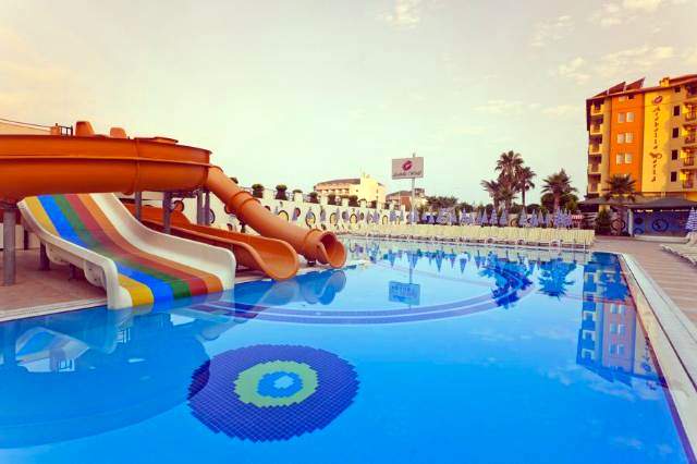 U sastavu hotela se nalazi recepcija, restoran, više barova, bazen sa ležaljkama i suncobranima, 3 vodena tobogana, unutrašnji bazen, dečiji bazen, mini klub za decu, fitnes centar, odbojka na pesku, pikado, stoni tenis, uz doplatu sauna, tursko kupatilo,…