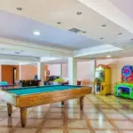 U sastavu hotela ATRIUM nalazi se recepcija, lobi bar, restoran, više bazena sa ležaljkama i suncobranima, dečiji bazen, mini Aqua park za decu, mini klub za decu, teniski teren, odbojku na pesku, stoni tenis, bilijar, dnevne i večernje animacije za goste hotela, …