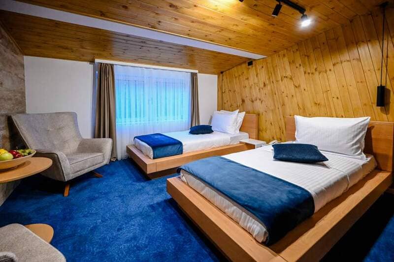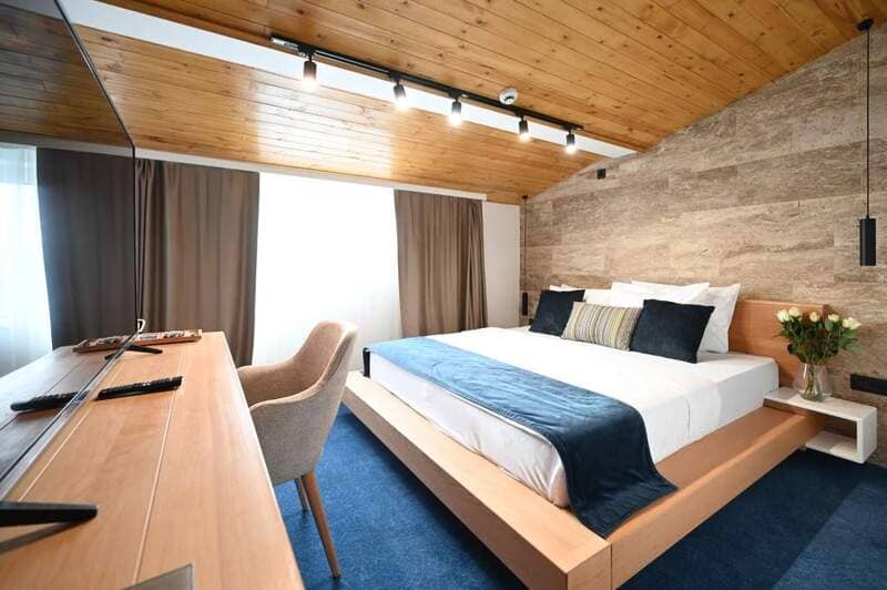 Smeštaj: Hotel raspolaže sa 120 ležaja u jednokrevetnim, dvokrevetnim sobama i šest apartmana. Sve smeštajne jedinice su potpuno opremljene i poseduju TV, minibar, internet.