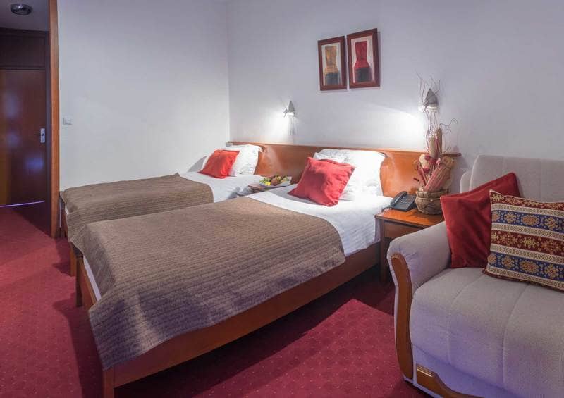 - Twin soba poseduje mini bar, TV sa velikim izborom kanala i pristup Internetu, kupatilo sa kadom, fenom za kosu i kozmetikom. Kvadratura twin sobe je oko 20 m2, idealna je za smeštanje do 3 osobe, maksimalno 2 odraslih i 2 dece.