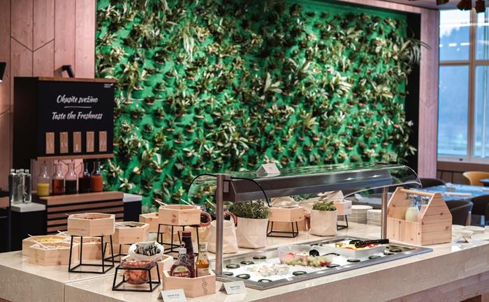 U sastavu hotela je glavni restoran i a la carte restoran Veranda sa terasom i pogledom na jezero, kao i aperitiv bar i manji restoran u sklopu wellness centra Živa.