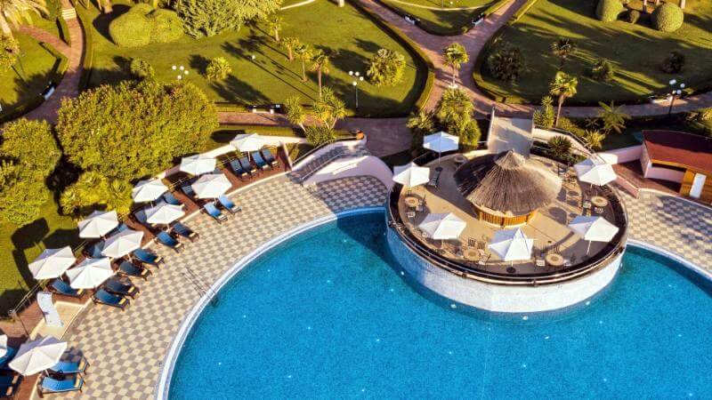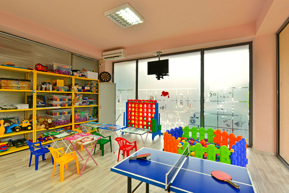 U sastavu hotela nalazi se recepcija, 2 restorana (u blokovima A i B), picerija, 2 hola-bar, 2 konferencijske sale (za 350 i 150 osoba), 3 spoljna bazena, zatvoreni bazen, bar na plaži, bar na bazenu, u bloku A se nalazi Spa i Wellness centar, mini market u bloku C, stoni tenis, teniski tereni, animacija, dečija soba i igralište.