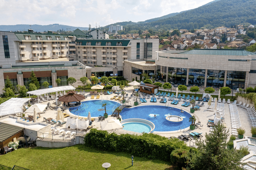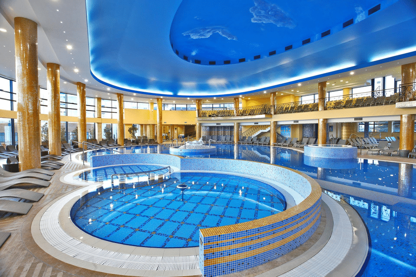 Spa & wellnes centar se sastoji od deset unutrašnjih u spoljašnjih bazena, bio saune, relaks sobe sa himalajskom solju, finske saune, parnog kupatila, ruske banje i tepidarijuma.