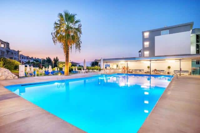 U sastavu hotela KRIOPIGI nalazi se recepcija, restoran, bar pored bazena, bazen sa delom za decu, igralište za decu, stoni tenis, bilijar, teretana, usluga iznamljivanja peškira za plažu (uz depozit), večernja animacija, spa centar.