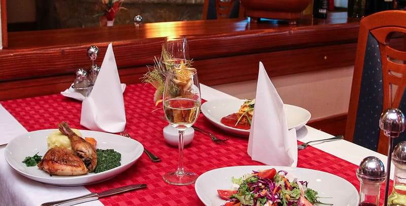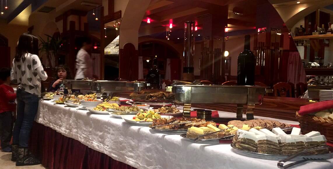 Usluga: polupansion / doručak i večera – švedski sto, samoposluživanje/. U slučaju da u hotelu boravi manje od 15 osoba princip posluženja obroka je na bazi menija.