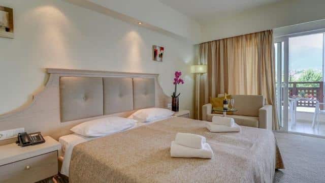 Suite može imati pogled na more ili Olimp, površine je 47m2 i sastoji se od sobe u kojoj se nalazi francuski ležaj i dnevne sobe sa 2 sofe na razvlačenje. Maksimalni kapacitet je 4 osobe.