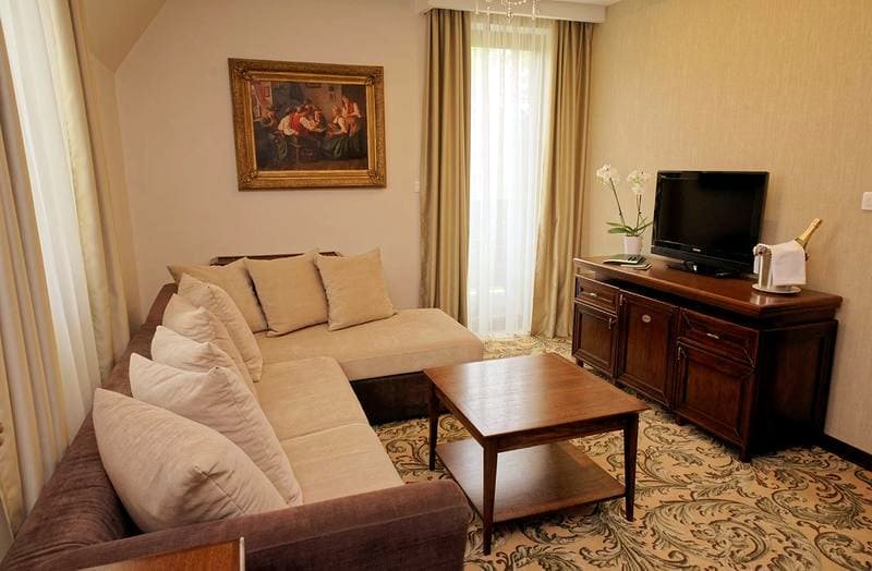 VIP apartman je površine 60m2 i sadrži francuski ležaj u spavaćoj sobi, garnituru na razvlačenje u dnevnoj sobi, kupatilo (sa đakuzi kadom, kozmetikom, bade mantilima, peškirima i papučama), LCD TV, radni sto u dnevnom boravku, sef, mini bar, klima uređaj, WiFi i balkon sa garniturom za sedenje.