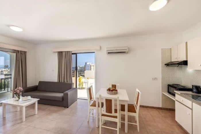 Apartmani su površine oko 40m2 i poseduju dnevnu boravak sa 2 sofe i spavaću sobu, TV, sef (uz doplatu), klima uređaj, mini čajnu kuhinju, fen za kosu, TWC, balkon ili terasu. Predviđeni su za smeštaj 4 osobe.