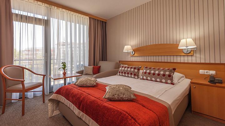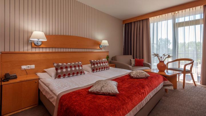 Sve sobe imaju sat TV, mini bar, kupatilo, fen, pojedine sa balkonom. Pomoćni krevet u sobama je širine od 70 cm. Sobe s pogledom na vodeni park Terma 3000 imaju balkon. U standardnim sobama je moguć samo 1 pomoćni ležaj.