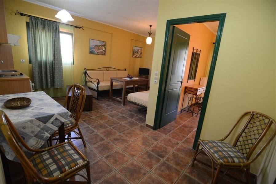 1/4+1 apartman – u jednoj prostoriji čajna kuhinja sa dva obična ležaja i pomoćni ležaj, u drugoj prostoriji bračni ležaj.