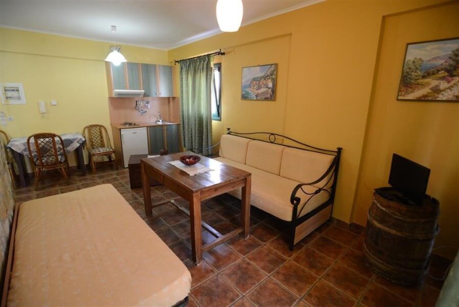 1/4 apartman – u jednoj prostoriji čajna kuhinja sa dva obična ležaja, u drugoj prostoriji bračni ležaj.