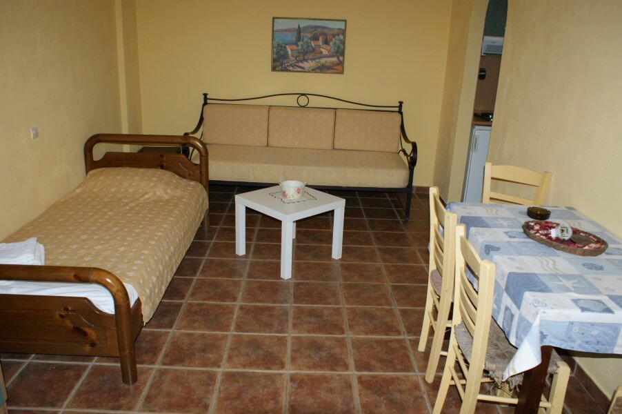 1/3+1 studio – u jednoj prostoriji čajna kuhinja, tri obična ležaja i fotelja na razvlačenje.
