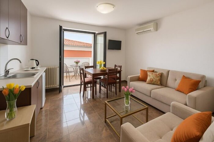 Privatni smeštaj MIRJANA poseduje studije za 2 osobe, kao i apartmane za smeštaj 4-5 osoba.