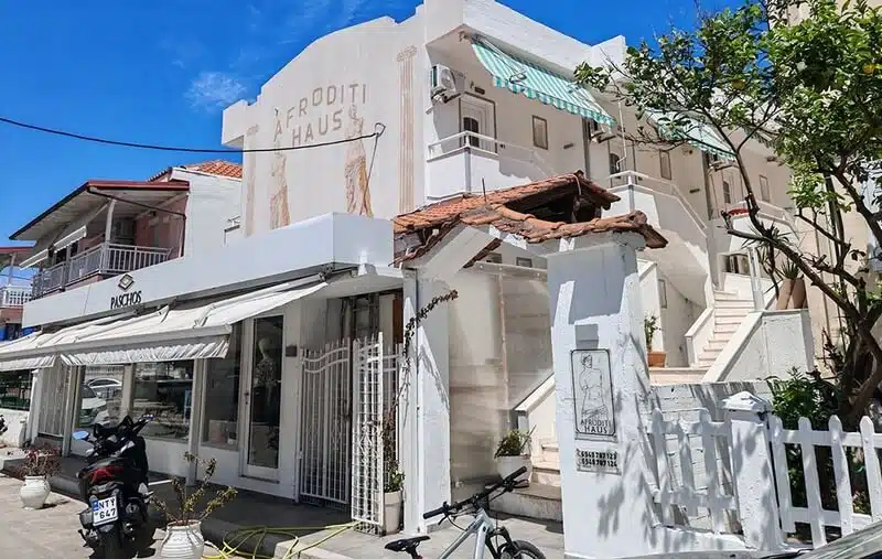 Vila TEO NEW Sarti (ex AFRODITI) se nalazi na 30 metara udaljenosti od mora i plaže, u starom delu letovališta Sarti na Sitoniji- drugom prstu poluostrva Halkidiki. U blizini vile TEO NEW nalaze se brojni restorani, taverne, beach barovi, marketi i prodavnice. Kuća je u fazi renoviranja za sezonu 2025 i putnike će dočekati u novom izdanju.