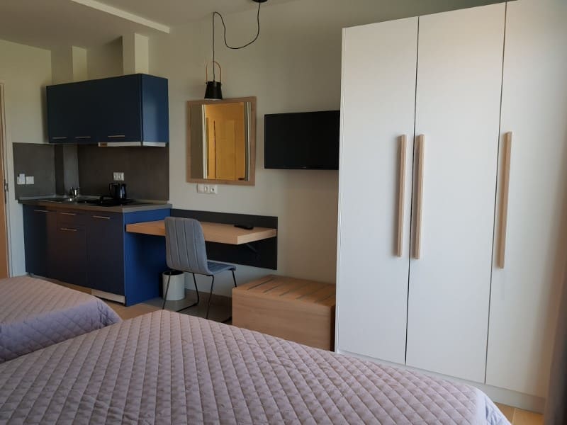 1/3 studio – u jednoj prostoriji čajna kuhinja, bračni ležaj i običan ležaj.
