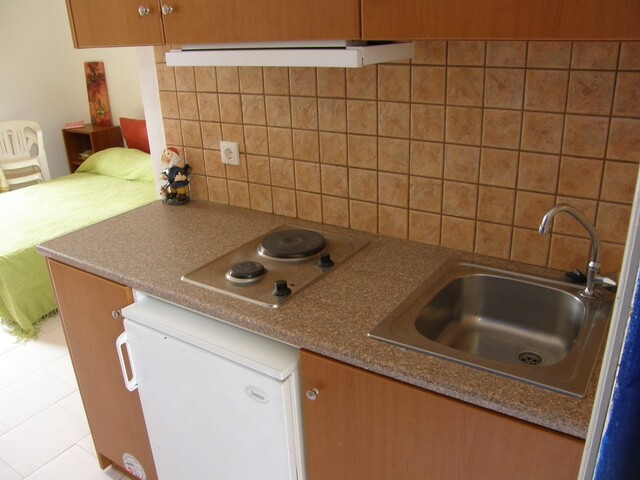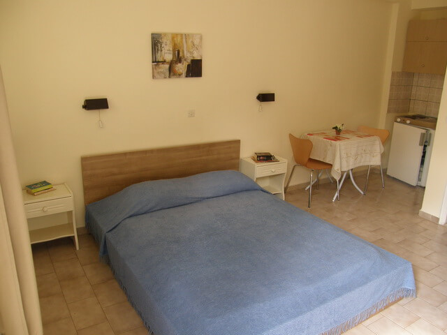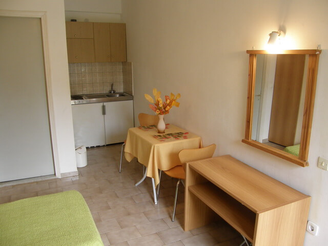 STUDIO 2 i 3: sobe se sastoje od dva ili tri ležaja, kuhinjskog dela (frižider, ugradni šporet sa dve ringle, aspirator, posuđe za odgovarajući broja osoba), klima uz doplatu, kupatilo – tuš/wc sa peškirima. Balkon sa garniturom za sedenje.