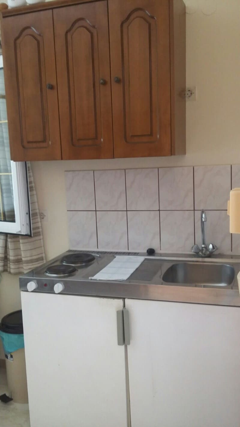 TROKREVETNI APARTMAN / APARTMAN 1/3+1: Apartmani se sastoje od spavaće sobe u kojoj se nalazi ili francuski ležaj dimenzija 190x145cm ili dva singl standardna spojena ležaja dimenzija 190x80cm, TV/KAT, noćni stočić i ormar. U drugoj prostoriji se nalazi kuhinja sa posuđem za tri-četiri osobe, rešo sa dve ringle (mala i velika), frižider. Takođe, tu se nalazi ležaj dimenzija 185×80 cm, a kod app 1/3+1 se nalazi ležaj 185×80 cm iz kog se izvlači jos jedan ležaj dimenzija 185×80. Apartman poseduje kupatilo sa TUŠ/WC, kao i klima uređaj. Apartman poseduje terasu sa garniturom za sedenje.