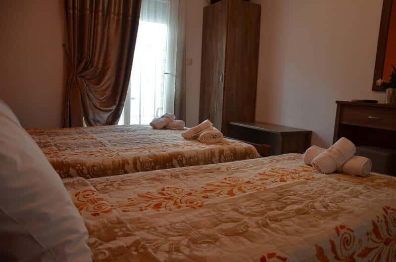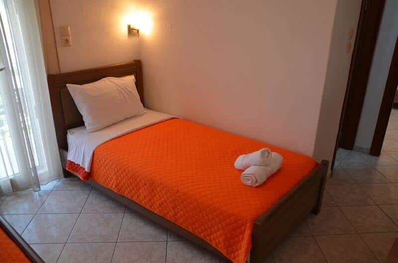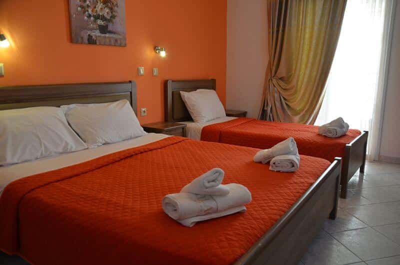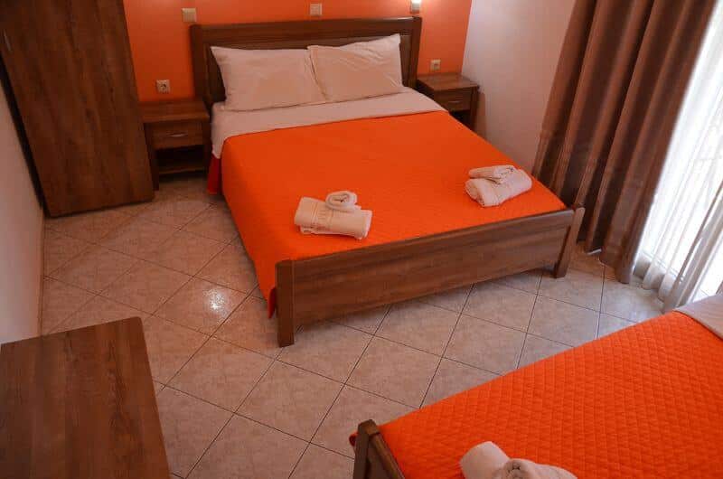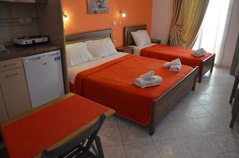 Trokrevetni apartman: poseduje francuski ležaj i jedan standardni ležaj ili 3 standardna ležaja, TV, klima uređaj, kupatilo sa tušem, terasa sa garniturom za sedenje. Kuhinja sa trpezarijom i frižiderom se nalazi u posebno fizički odvojenoj prostoriji van dela gde su kreveti i kupatilo.