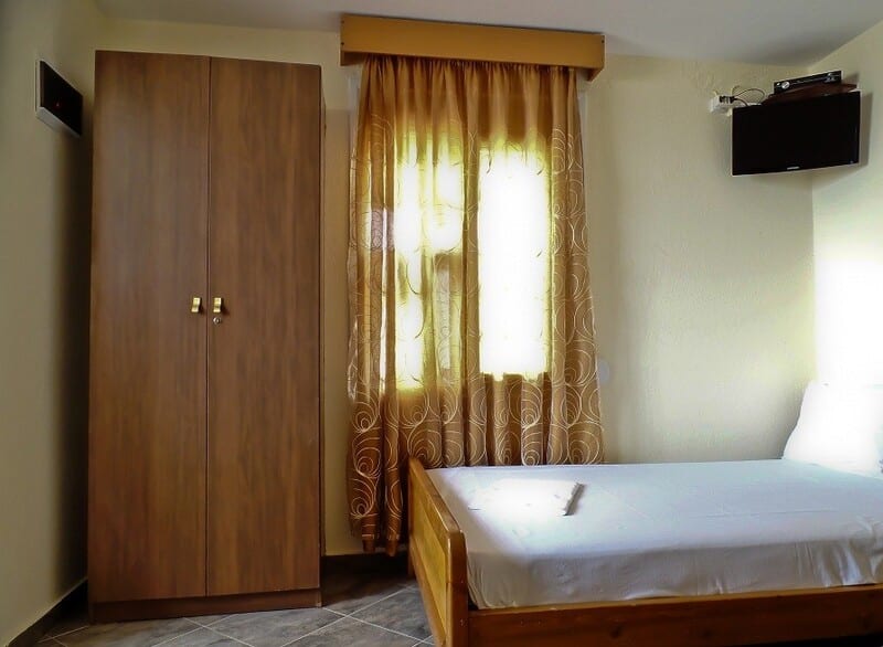- Petokrevetni poluapartman (1/5 p-app) u prizemlju, za smeštaj 3-5 osoba – 2 francuska ležaja + singl ležaj (dve prostorije nisu odvojene vratima).