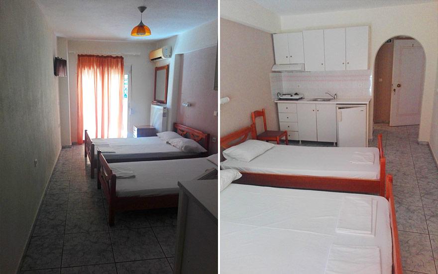 Svaka smeštajna jedinica poseduje kuhinjski blok, televizor, klima uređaj, kupatilo, terasu. Ležajevi su standardni francuski, singl ležajevi i pomoćni ležajevi za decu do 12 godina. Doplata za korišćenje klima uređaja je 5€ po danu.