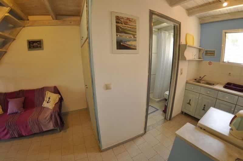 Smeštajne jedinice tipa studio se sastoje iz 2 nivoa. U donjem nivou nalazi se pomoćni ležaj, osnovno opremljena kuhinja, mali dnevni boravak, TV, TWC. U gornjem nivou nalazi se spavaća soba sa klimom (uz doplatu).