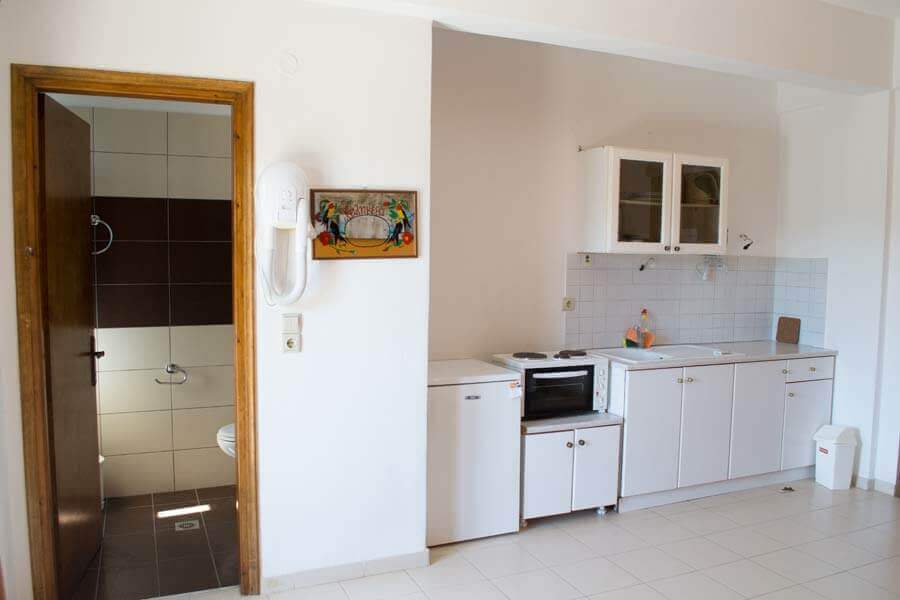 1/3 studio – u jednoj prostoriji čajna kuhinja, bračni i običan ležaj.