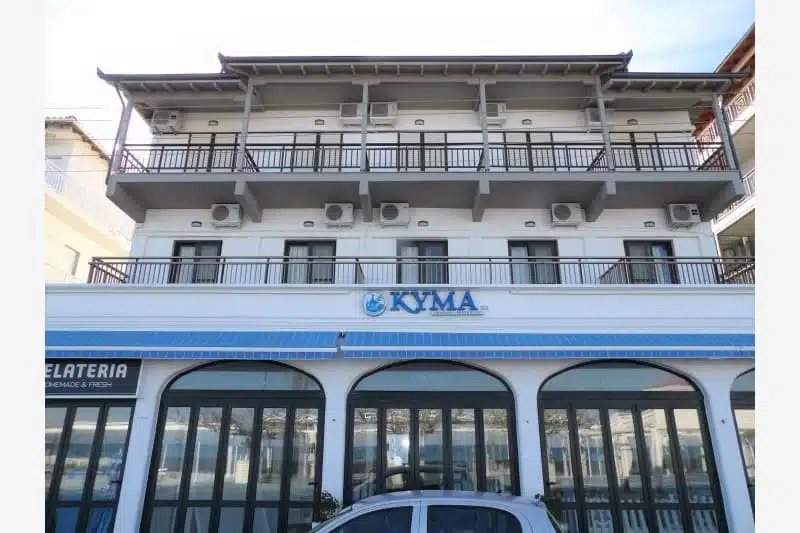 Vila KYMA BEACH poseduje studije za smeštaj 2 i 3 osobe, i dupleks apartmane za 4, 5 i 6 osoba. Pojedini studiji za 2 osobe imaju pogled na more (SV ili PM).