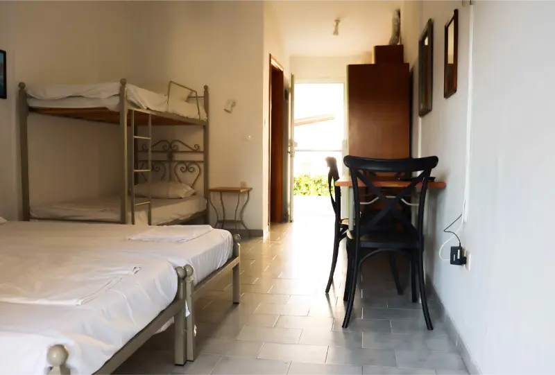 Vila PARMAKIS poseduje studija za smeštaj 2, 3 i 4 osobe. Smeštajni kapaciteti se nalaze se u prizemlju, i na I spratu objekta.