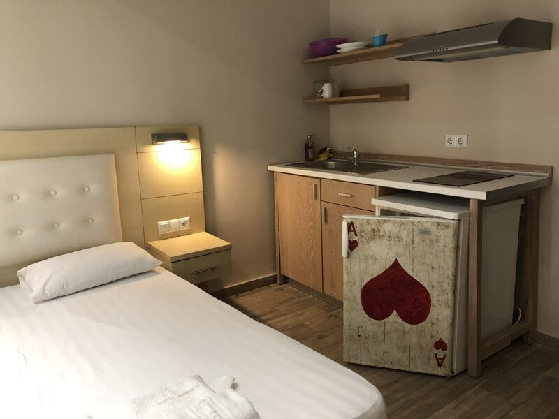 Svaka smeštajna jedinica poseduje kuhinjski blok, televizor, klima uređaj, kupatilo, terasu. Ležajevi su standardni singl i francuski ležajevi. Doplata za korišćenje klima uređaja je 6€ po danu.