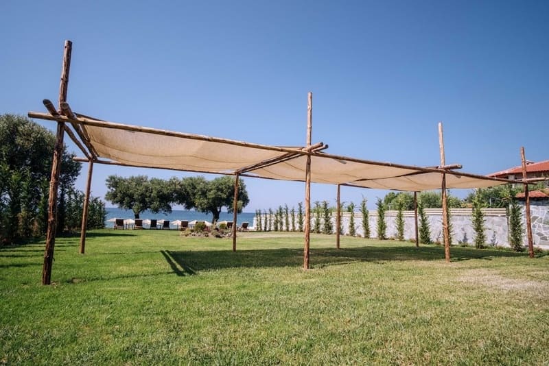 Vila SANTA ANA Nea Skioni se nalazi na samoj obali privatne plaže, u mirnijem delu letovališta Nea Skioni na Kasandri prvom prstu poluostrva Halkidiki na severu Grčke. Vila poseduje privatnu plažu sa ležaljkama i suncobranima, do koje se prelazi put. U prelepon dvorištu vile nalazi se letnjikovac i roštilj.