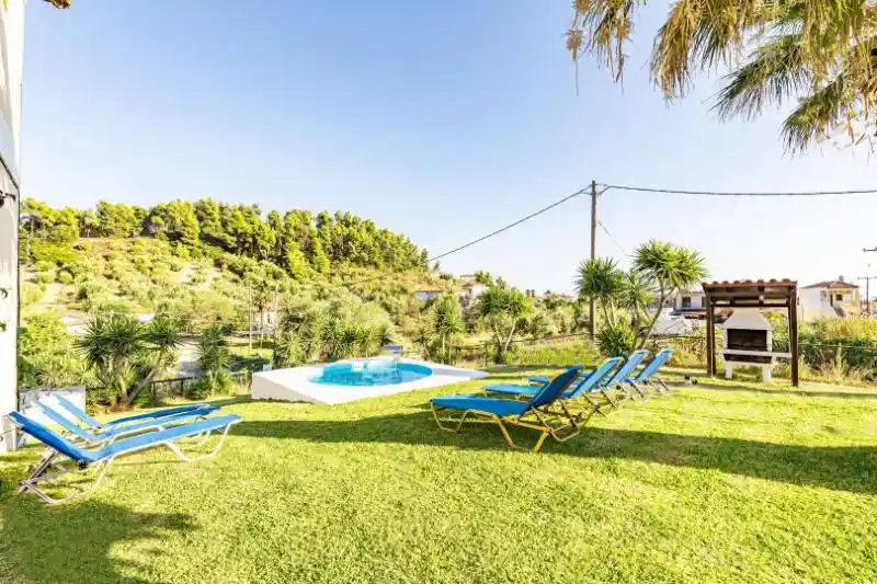 Vila SKIONI STUDIOS Nea Skioni se nalazi na 370 metara udaljenosti od plaže, na 500 metara udaljenosti od centra letovališta Nea Skioni na Kasandri prvom prstu poluostrva Halkidiki na severu Grčke. U sastavu objekta nalazi se lepo uređeno dvorište sa travnjakom, manji bazen sa ležaljkama i roštilj.